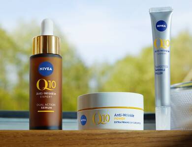 NIVEA Q10 er en koncentreret anti-age-serie udviklet til dig, der er 30+ år. Serien formindsker rynker og linjer samt modvirker nye rynker. Den findes til forskellige hudtyper, og er med SPF15 eller SPF30.