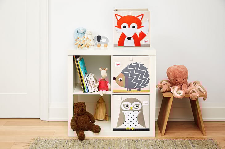 3 Sprouts opbevaringskassen passer ind i almindelige reolsystemer og er en praktisk og effektiv måde at sortere og gemme legetøj i.