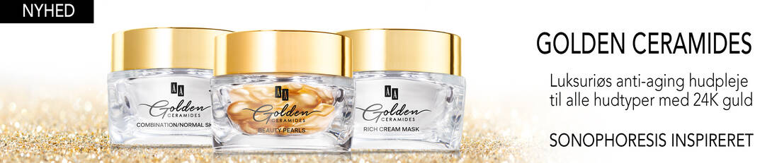 GOLDEN CERAMIDES er inspireret af virkningerne fra kosmetisk ultralydsbehandling. Rig på aktive komponenter, såsom 24K kosmetisk guld, ceramider, oligopeptider og hyaluronsyre neomatrix. 24K guld sikrer at huden optager de aktive ingredienser 10 gange mere effektivt, mens et intelligent fiberskade tracking system (INTGC3), optimerer indtrængning og sikrer præcis plejevirkning af aktiver i alle hudlag. Hudens kollagen forbedres, aldringsprocessen udskydes og synligheden af rynker reduceres.