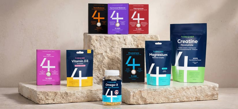 4 HIM & HER laver kosttilskud, der bidrager til fysisk sundhed og mentalt velvære. Vi tror på, at små vaner skaber bedre dage.