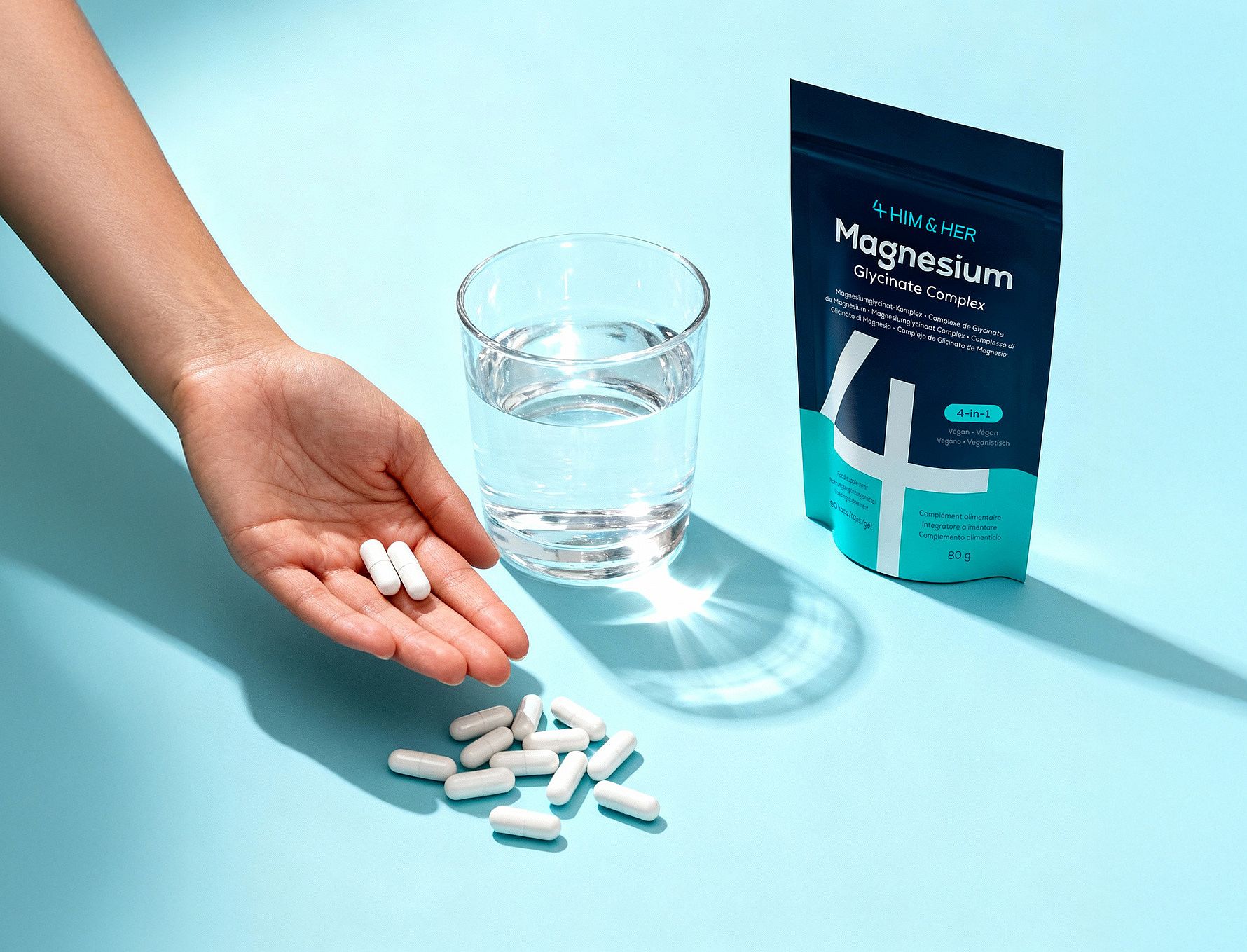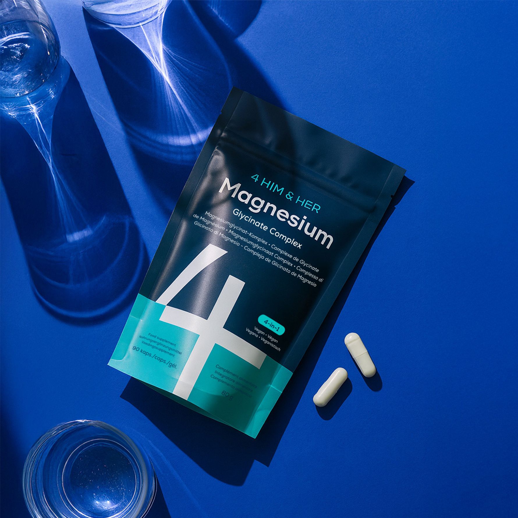 | Totalt magnesium hvoraf: magnesium fra bisglycinat: magnesium fra malat: magnesium fra citrat: | 250 mg 130 mg 60 mg 60 mg | 67 % |