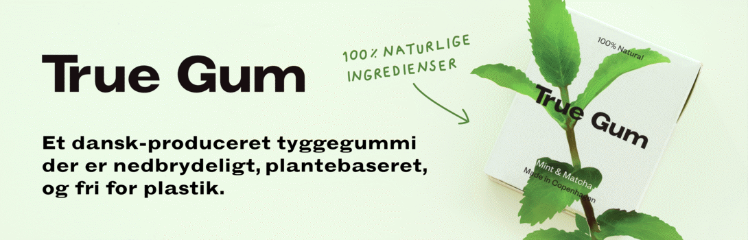 True Gum er et nyt, 100% plastikfrit og bionedbrydeligt tyggegummi der tager hensyn til dig og miljøet. Udover at smage godt, er tyggegummiet vegansk.