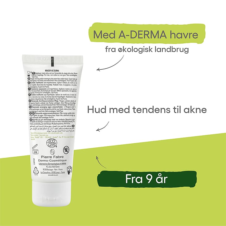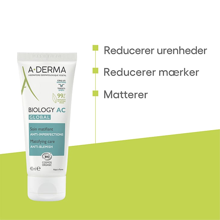 BIOLOGY AC Global Cream 40ml er en dermatologisk og økologisk dagcreme til sart, uren og fedtet hud.