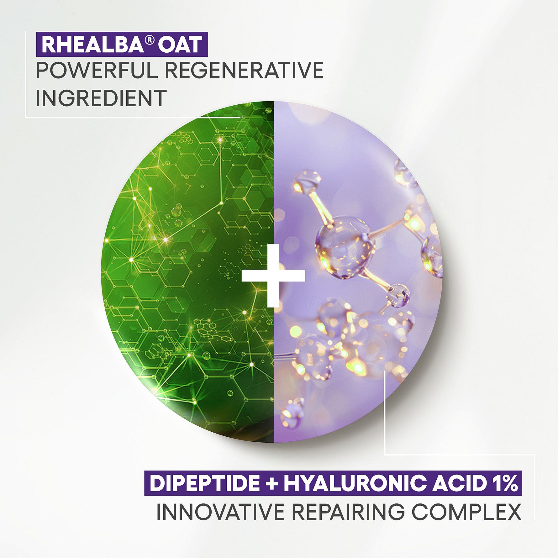 Den nye formulering består af 94% naturlige ingredienser og aktive ingredienser, der reducerer risikoen for dannelse af mærker samt fremmer hurtigere genopbygning af huden. Cremen indeholder 1% hyaluronsyre, der binder fugt og understøtter hudens genopbygning, dipeptider reducerer synligheden af røde og brune pletter, mens Rhealba® Havrekim ekstrakt fremmer cellefornyelsen og beroliger huden. Formlen er desuden beriget med peruviansk lian, der reducerer følelsen af ubehag i huden.