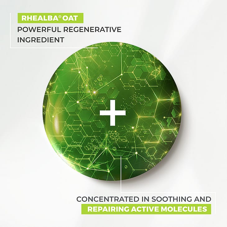 - Rhealba® Havrekim ekstrakt: Genopretter og beroliger huden
