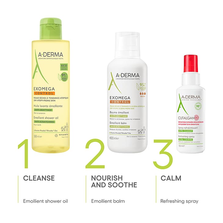 Produktbeskrivelse A-DERMA Exomega Control Anti-Scratching Balm er en nærende og beroligende fugtcreme med en rig tekstur, der er udviklet til meget tør og atopisk hud hos både børn og voksne. Den særligt nærende creme dæmper kløe forbundet med tørhed, reducerer rødme og dæmper irritation samtidig med, at den styrker hudbarrieren og hjælper med at genoprette hudens naturlige balance, således at huden kan udføre sin naturlige beskyttende funktion.