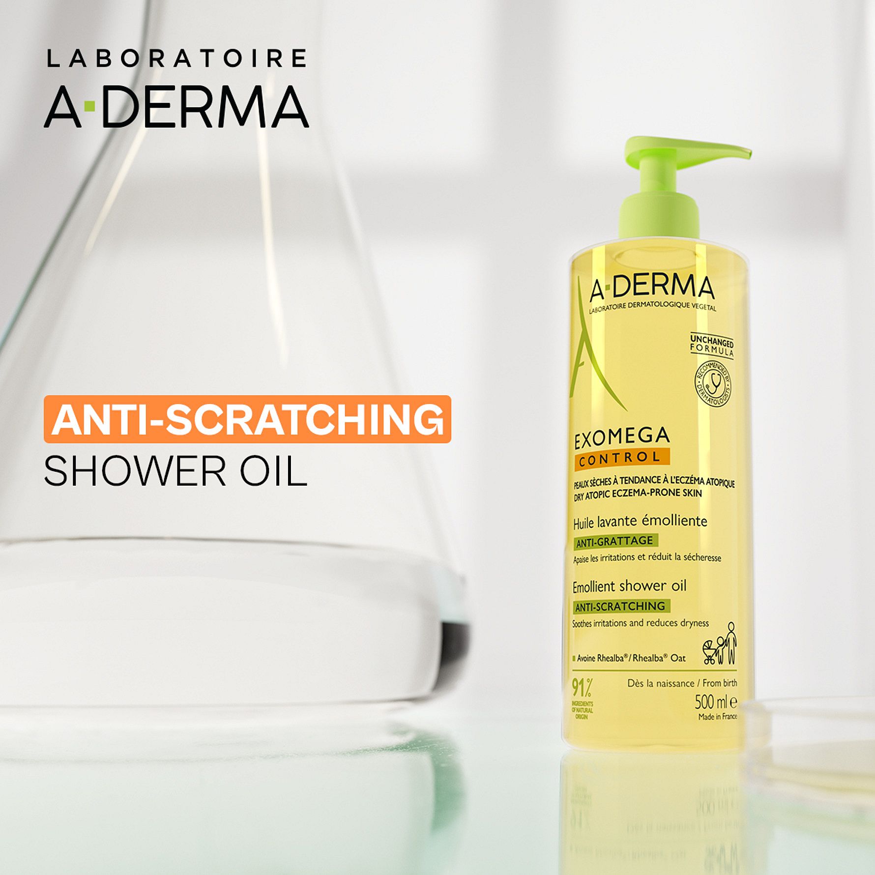 Produktbeskrivelse A-DERMA Exomega Control Anti-Scratching Shower Oil er en blødgørende og kløedæmpende vaskeolie, der renser, nærer og beskytter tør, sart og atopisk hud hos både børn og voksne. Den skånsomme formulering hjælper med at bevare hudens naturlige fugtbalance, forhindre udtørring og dæmper kløe og irritation forbundet med tør hud.