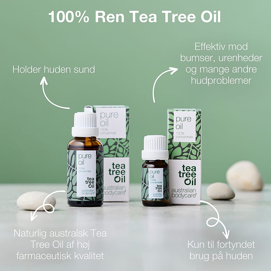 100% koncentreret Tea Tree Oil. Modvirker uren hud, bumser og hudproblemer.
