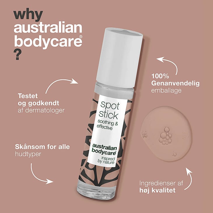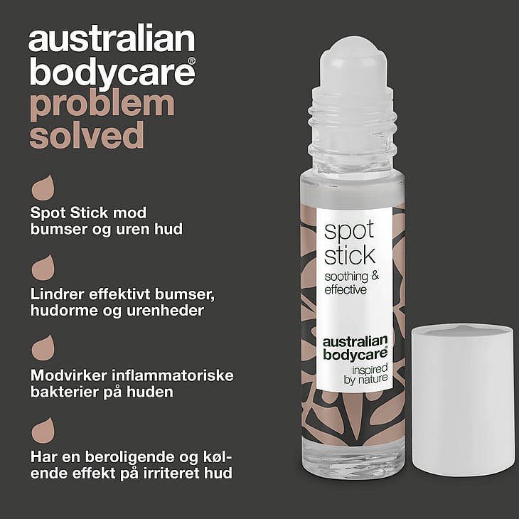 Australian Bodycare Spot Stick mod bumser, hudorme og uren hud. 100% naturlig Tea Tree Oil modvirker bumser og virker kløestillende. Egnet til alle hudtyper.