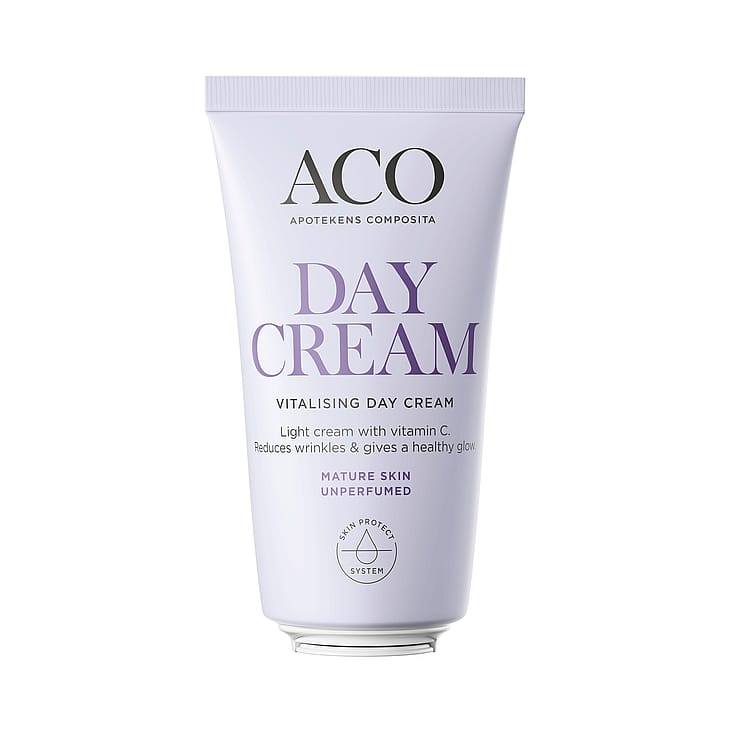 Dagcreme med C-vitamin til moden hud. Reducerer rynker og tilfører fugt i 24 timer. Glatter huden og styrker hudbarrieren. Giver glød og er velegnet under makeup. Uparfumeret.