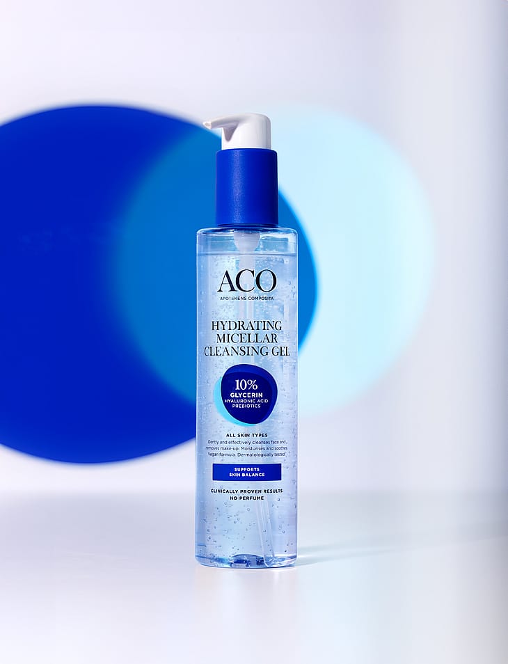 ACO Protect Balance Micellar Cleansing Gel er en fedtfri rensegel, der kan anvendes af kunder med følsom hud eller som ønsker en mild og effektiv makeupfjerner.