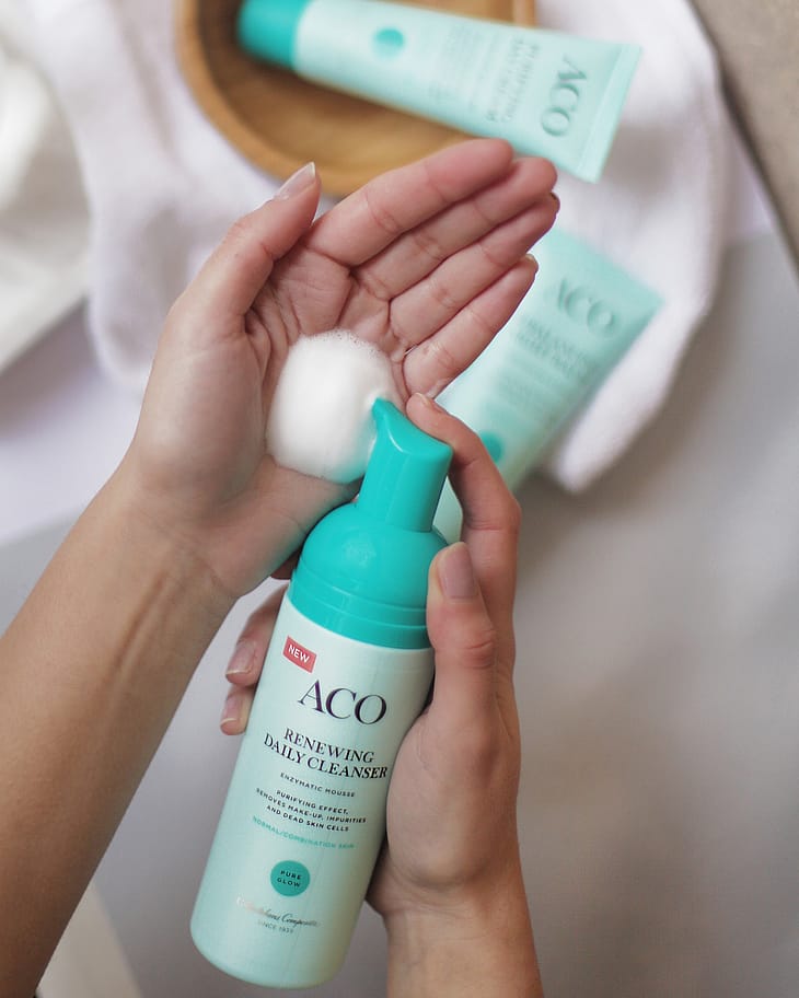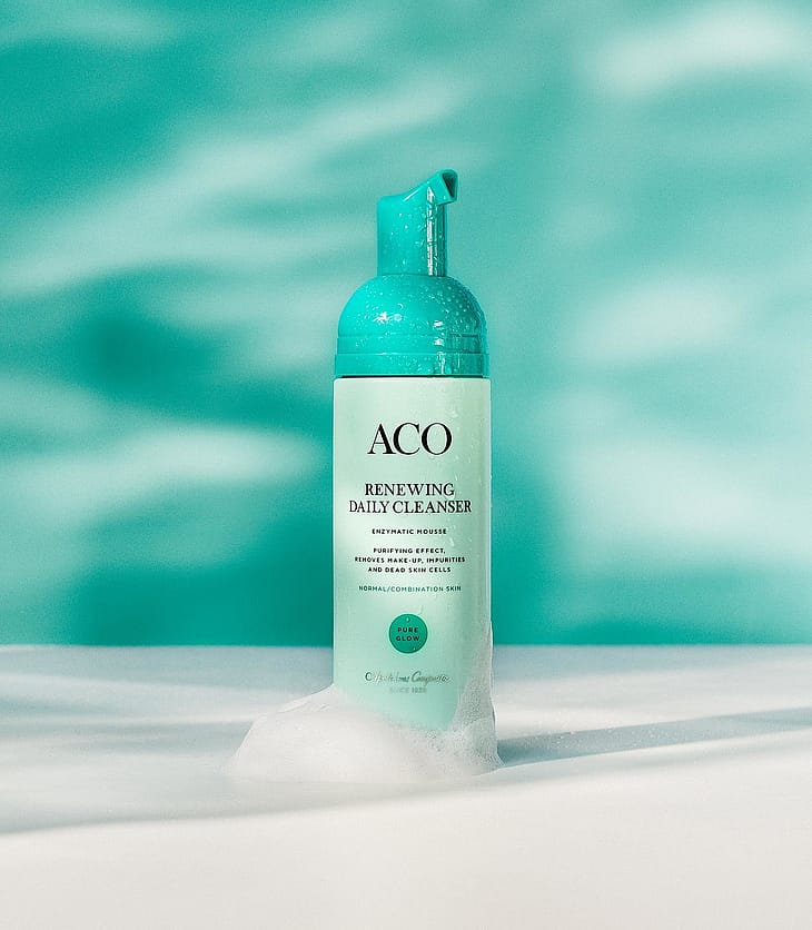 ACO Pure Glow-serien er specielt udviklet til kombineret hud hos voksne. For gammel til bumser og for ung til rynker? – så er Pure Glow-serien måske noget for dig. Serien er specielt designet til at fremhæve hudens naturlige glød, så din hud føles velplejet og sund! Det starter med en god ansigtsrens for at sikre, at du kan anvende de andre produkter på en ren hud.