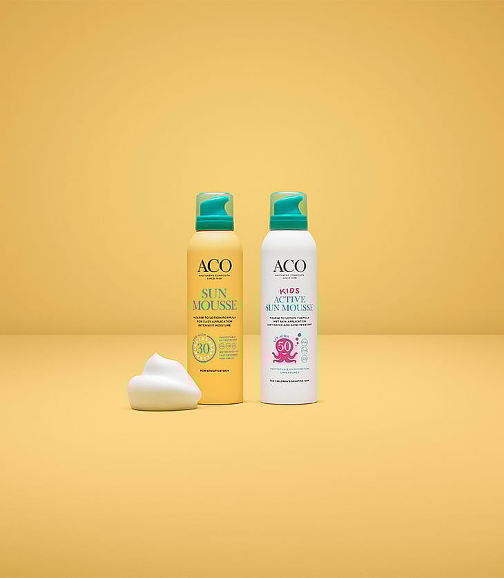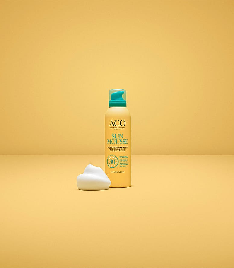 ACO sun Mousse SPF 30 er en let og behagelig solmousse for hele kroppen med høj beskyttelse.