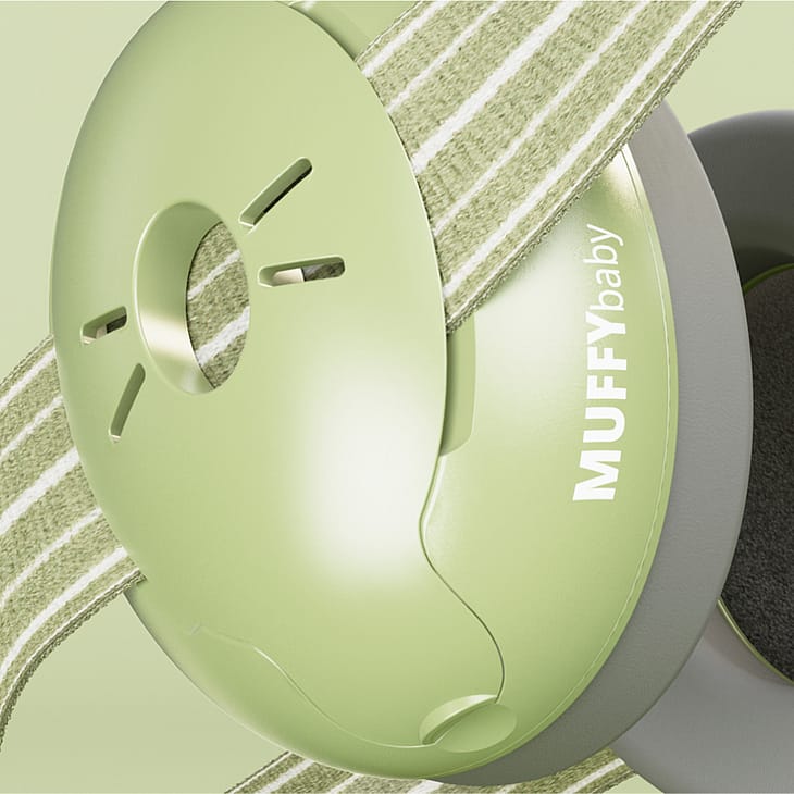 Muffy Baby er fremstillet af flere lag behageligt skum, der sikrer optimal pasform og tilpasning omkring ørerne. Det skridsikre hovedbånd sikrer, at høreværnet bliver på plads, mens den diagonale placering ikke udøver tryk på fontanellen.