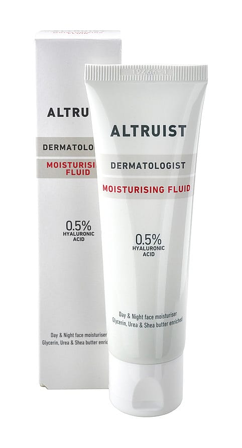 ALTRUIST Moisturising Fluid 0.5% Hyaluronic Acid 50 ml sikrer optimal fugt til huden og øger fasthed og elasticitet.