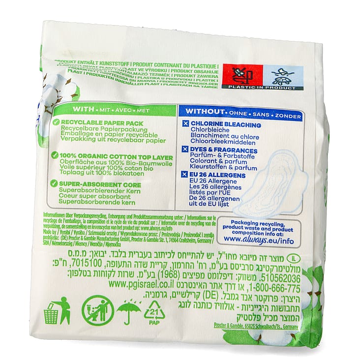 Always Hygiejnebind giver sikker beskyttelse med et 100 % økologisk, toplag i bomuld