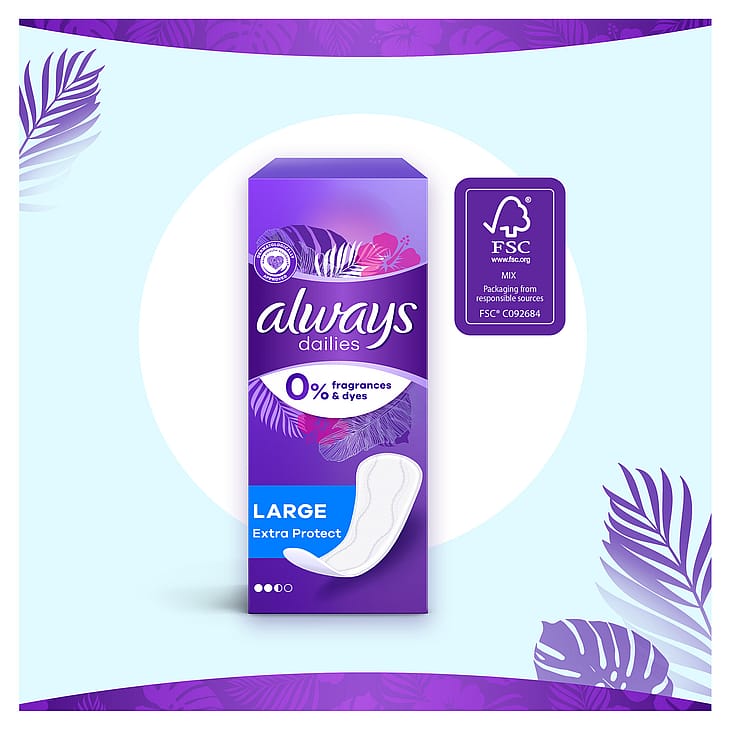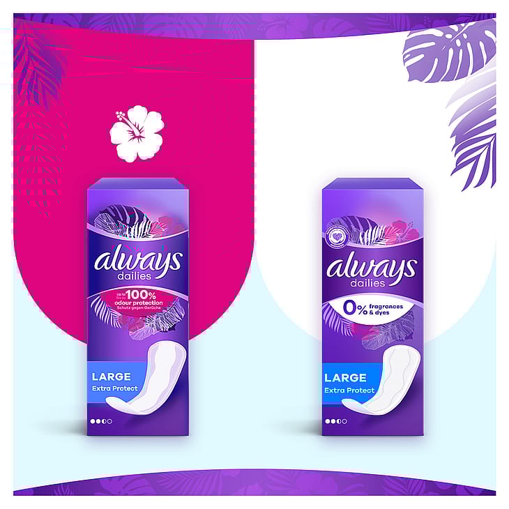 Beskyt dig selv hele dagen med Always Dailies Extra Protect Large 0%-trusseindlæg.