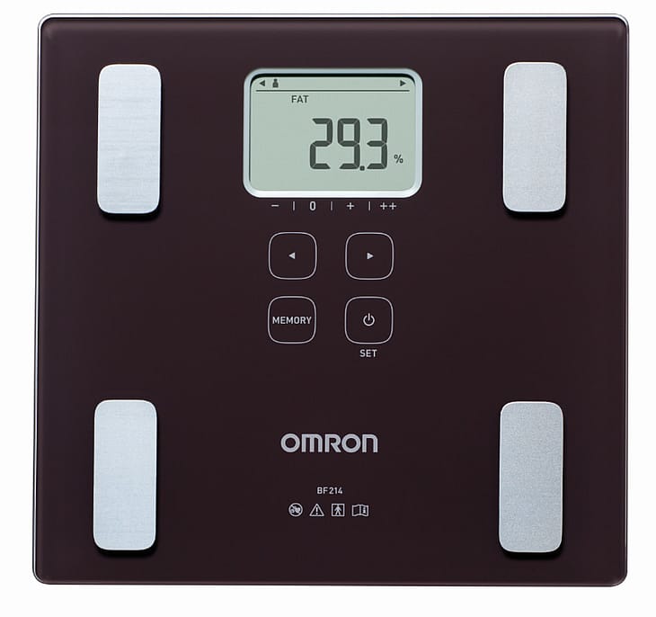 Omron BF214 fedtprocentvægten fra Omron er designet i et elegant kompakt design, hvor der nemt og hurtigt opnås et overblik over kropssammensætningen mht. vægt, kropsfedt, BMI og skeletmuskulaturen. Den er rigtig god til at kontrollere effekten af slankekuren (kost og motion) over tid.