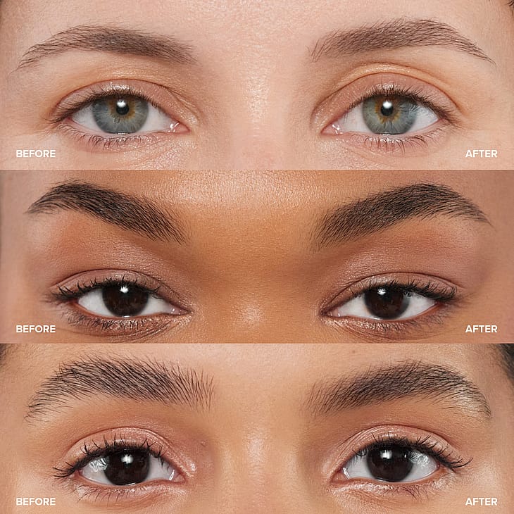 Start ved øjenbrynets rod og påfør Clear Brow Gel med korte, opadgående bevægelser for en løftende og volumengivende effekt (cirka 5-6 træk pr. øjenbryn). Brug siden af børsten til at holde den øverste række hår på plads. Brug Clear Brow Gel som det afsluttende trin i din øjenbrynsrutine for at fiksere farven og hårene på plads. Eller brug den alene til at style øjenbrynene for et poleret look.