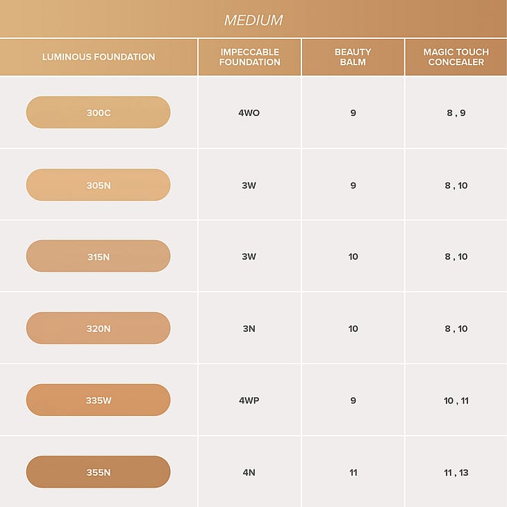- Fås i 5 nuancer (Fair, Light, Medium, Tan, Deep) og 3 undertoner (Cool, Warm, Neutral)