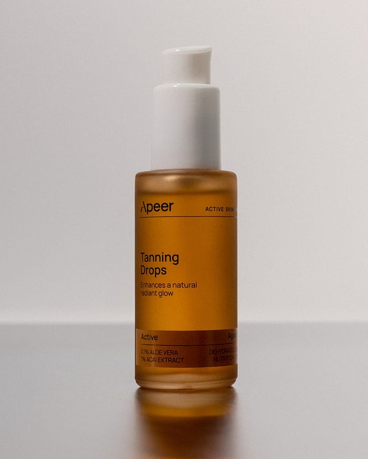 Apeer Tanning Drops giver huden en smuk, naturlig sommerglød året rundt. Formlen er baseret på naturlige DHA-molekyler, som reagerer med aminer og peptider i hudens øverste lag og udvikler en jævn, solkysset tone – uden at skade huden.