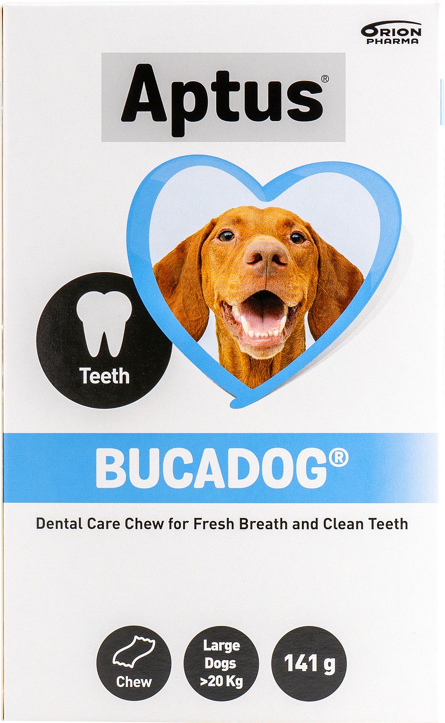 For at opnå det bedste resultat anbefaler vi, at tyggelapperne kombineres med regelmæssig tandbørstning med Aptus Bucadog enzymbaseret tandgel.