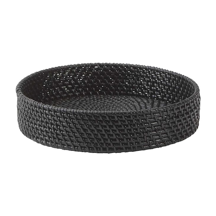 Aquanova har omhyggeligt skabt denne serie i håndvævet rattan, hvilket gør hver bakke unik med sit eget udtryk. De kompakte dimensioner – 30 cm i diameter og 6 cm i højden – gør den ideel til badeværelset, men også til sminkebordet eller som dekorativ base på sofabordet.