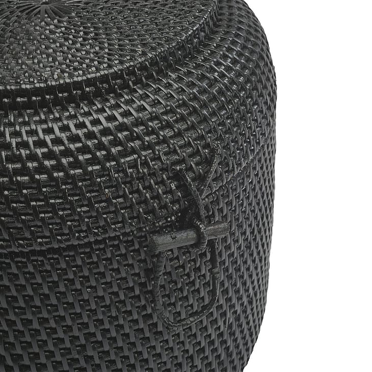 Kurven er fremstillet i 100 % rotting og er 100 % håndlavet, hvilket sikrer en solid konstruktion og et unikt udtryk. Den runde form giver en blød og harmonisk balance, mens det mørke fletværk fremstår markant og elegant. De små variationer i materialet understreger det autentiske håndværk, der kendetegner Aquanova.
