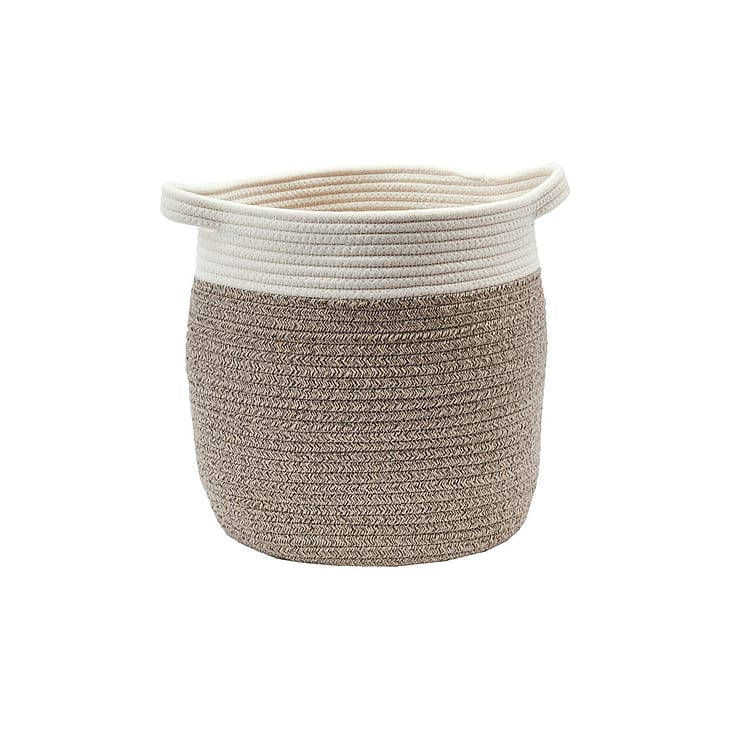 Den runde form (Ø 30 x H 30 cm) gør kurven nem at placere i alle hjørner af hjemmet, uden at den fylder for meget. Den beige farve giver en rolig, naturlig base, som matcher både lyse, minimalistiske hjem og varmere, mere klassiske indretninger.