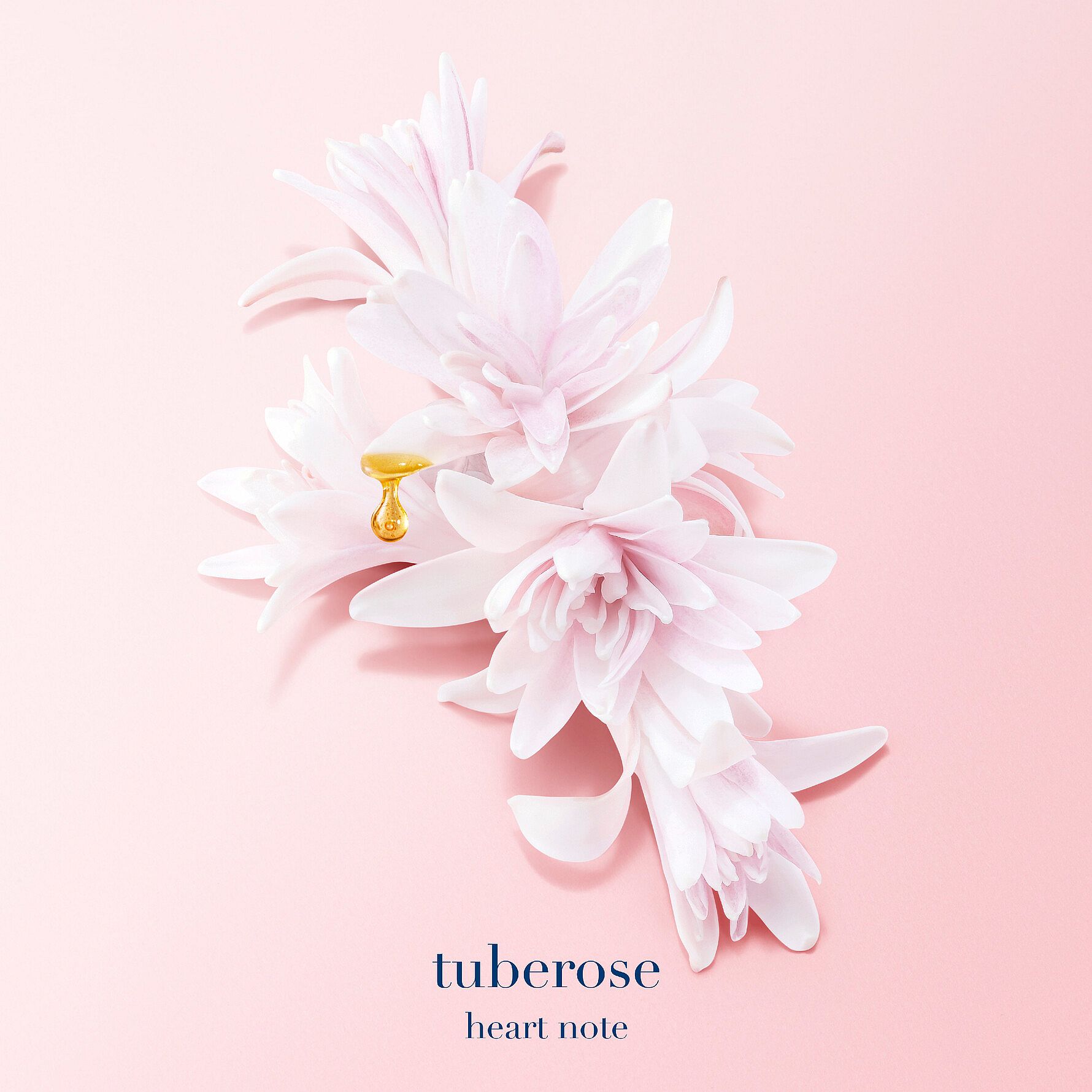 I hjertet af duften findes en hvid blomsterbuket, der afslører et cremet hjerte af tuberose-absolute.