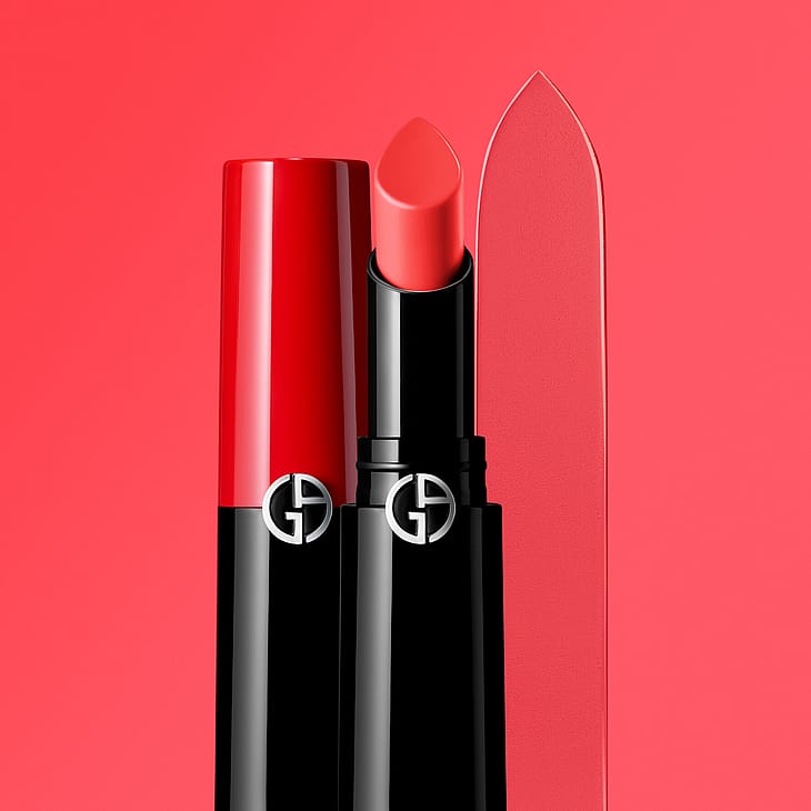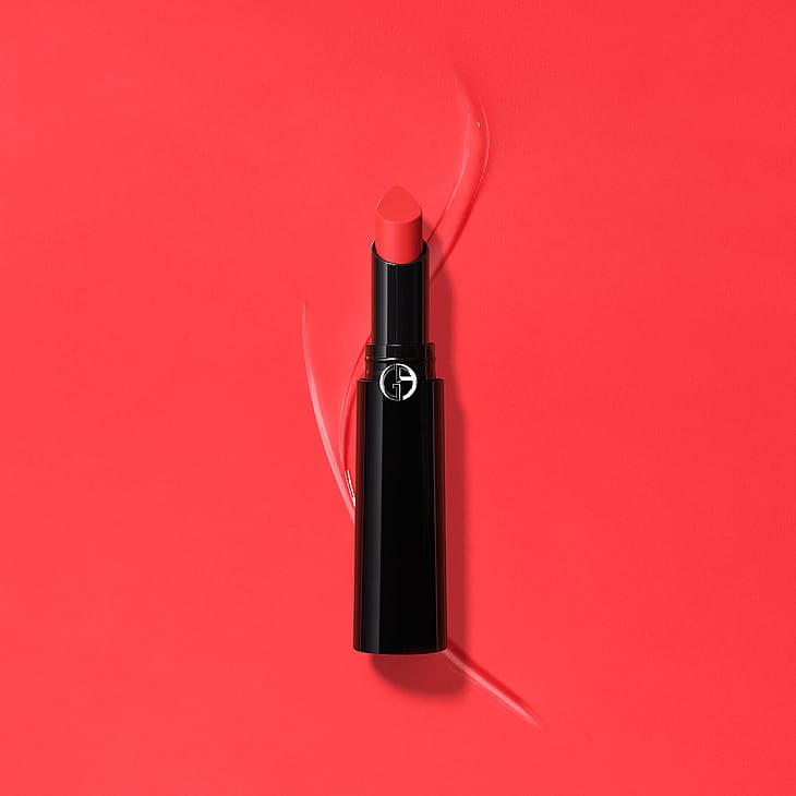 Den holdbare Lip Power-læbestift tilbyder en rig palet med 30 nuancer, der omfatter Giorgio Armanis signaturtoner.