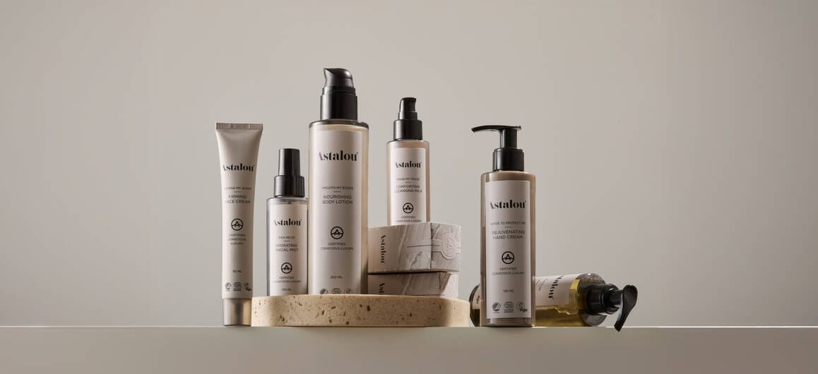 Astalou er luksuriøs, certificeret dansk hudpleje baseret på nærende ingredienser, der giver huden fugt og en smuk glød. Sanselig, effektiv – og skabt med et kompromisløst fokus på den gode kemi, der ikke ophobes i kroppen.