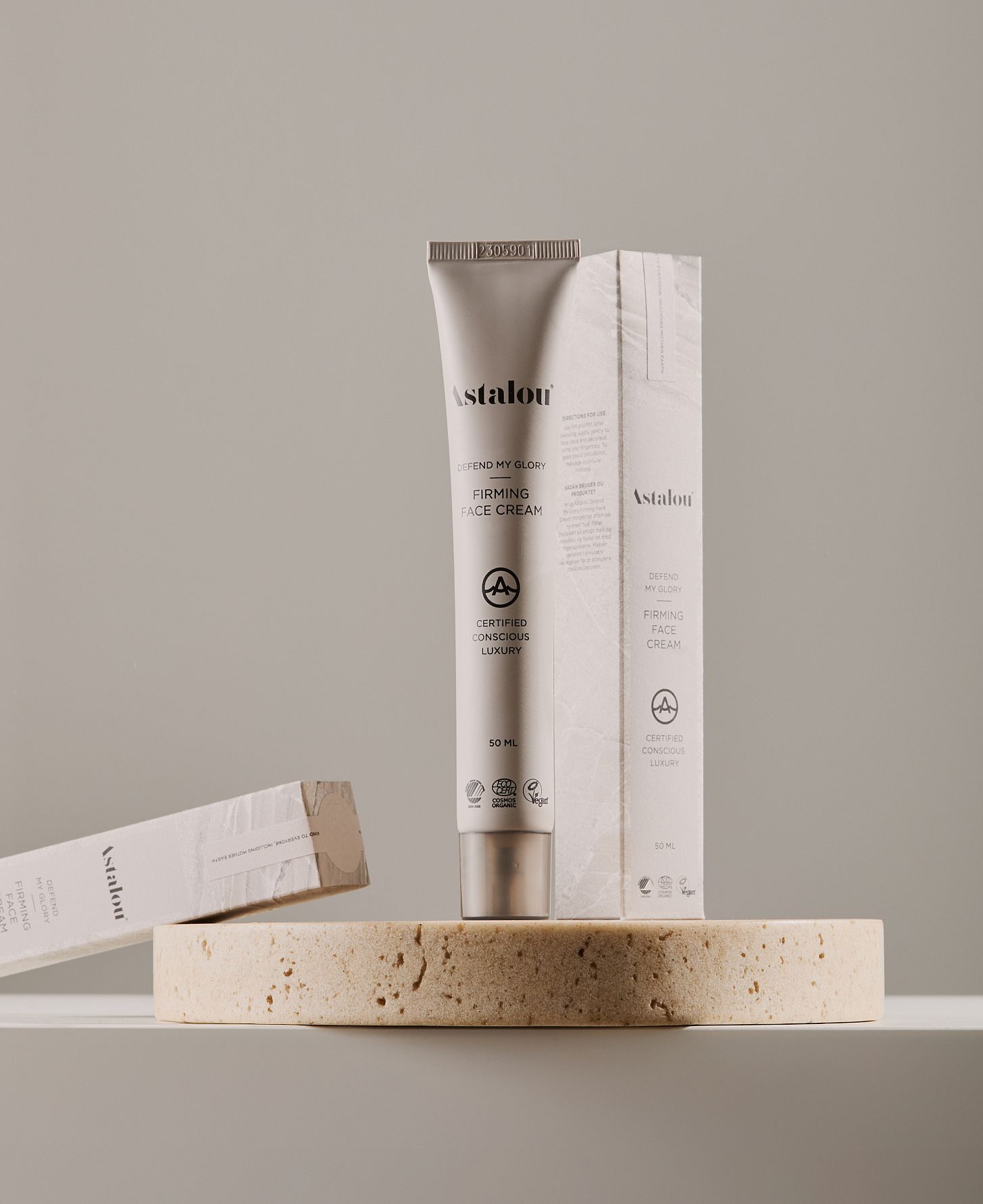 Astalou Defend My Glory Firming Face Cream er en luksuriøs ansigtscreme til moden hud – med et højt indhold af aktive ingredienser, der effektivt forbedrer hudens naturlige fugtbalance, bidrager til en blødere, smidigere og mere spændstig hud og minimerer begyndende alderstegn ved at opstramme og reducere fine linjer.