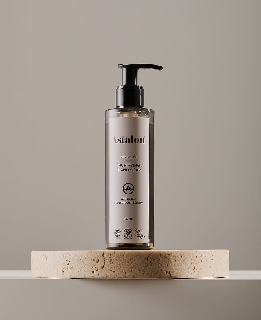 Astalou Reveal Me Purifying Hand Soap er en mild og nærende håndsæbe, der effektivt renser hænderne uden at udtørre huden. Den lette gel forvandler sig til et silkeblødt skum, som skånsomt fjerner snavs og bakterier, samtidig med at huden tilføres fugt og pleje.