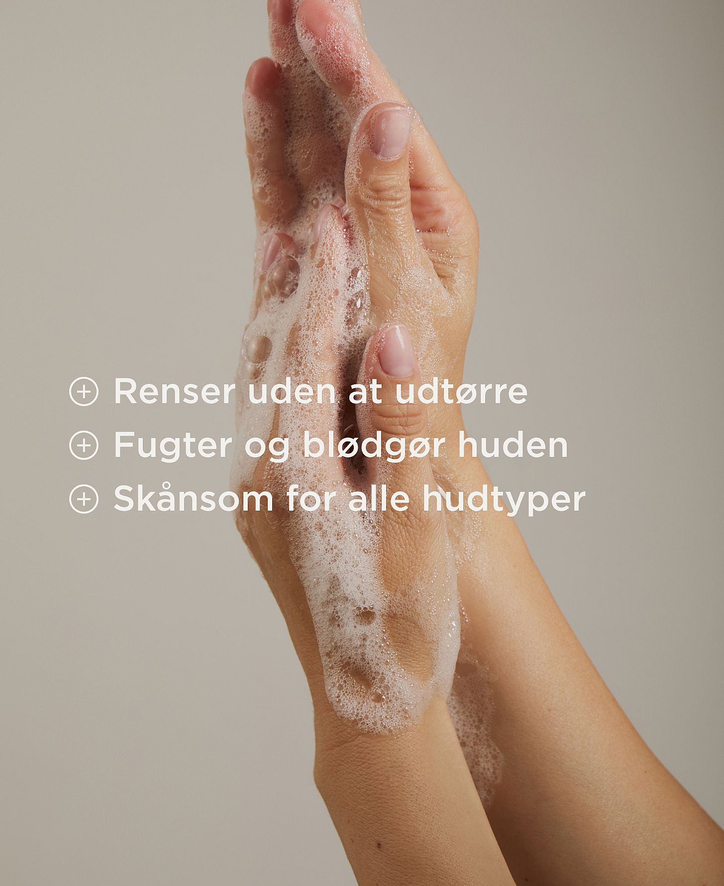 Pump lidt sæbe ud i våde håndflader, og massér indtil skummet er silkeblødt.
