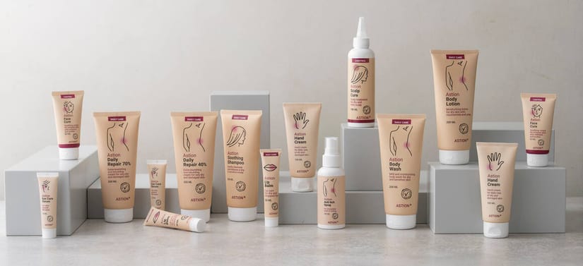 Astion Pharma tilbyder plejeprodukter til sensitiv, tør hud og eksem. Produkterne, som sæbe, shampoo og cremer, indeholder fugtgivende Urea og er parfumefri. Velegnet til hele familien.