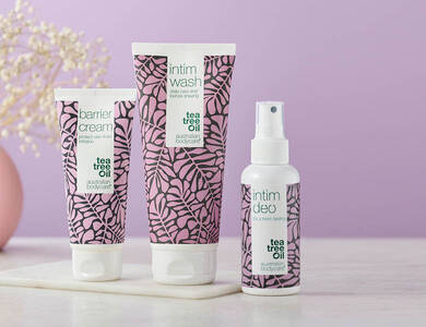 Hvis du oplever irritation, kløe, tørhed eller uønsket lugt, eller hvis du mangler bakteriemodvirkende intimbarberingsprodukter, er produkterne med Tea Tree Oil fra Australian Bodycare løsningen.