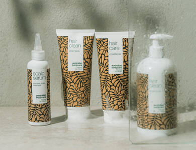 Hovedbundsprodukterne fra Australian Bodycare afhjælper tør, irriteret og kløende hovedbund. Scalp Serum, Hair Clean shampoo og Hair Care conditioner genskaber din hovedbunds naturlige balance, så du slipper af med irritation og skæl.
