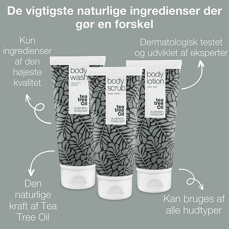 Den bakteriemodvirkende Tea Tree Oil fjerner snavs fra hudens overflade, når du vasker med Body Wash, der er en både effektiv og skånsom kropssæbe