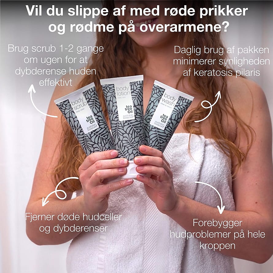 Endelig sikrer ugentlig eksfoliering med scrubben, at din hud er fri for døde hudceller, så de aktive ingredienser fra Body Wash og Body Lotion bedre kan trænge ind og virke aktivt i huden