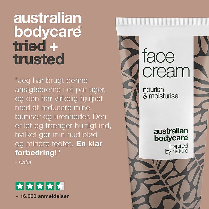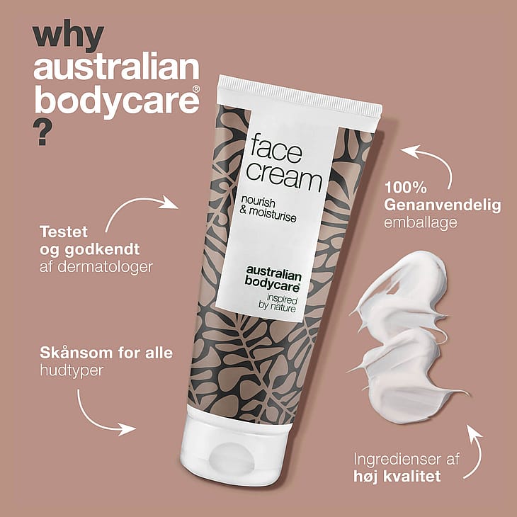 Face Cream fra Australian Bodycare indeholder plejende og fugtgivende egenskaber, der nærer huden hele dagen og natten.