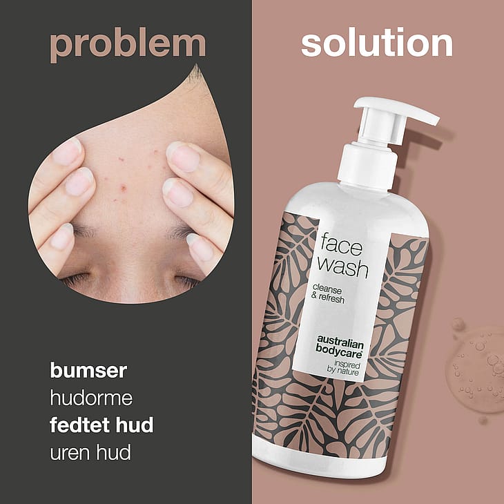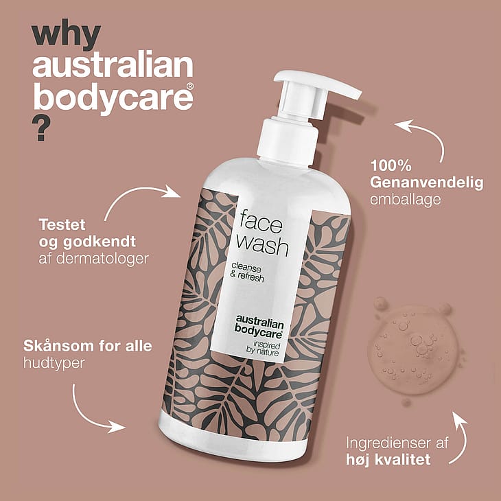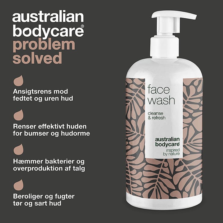 Ansigtsrens fra Australian Bodycare indeholder 100% naturlig Tea Tree Oil fra Australien og er effektiv mod hudorme, bumser og uren hud i ansigtet. Face Wash er især god til fedtet hud, da produktet effektivt vasker overskydende talg og snavs af huden.