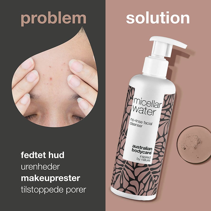 Australian Bodycare har udviklet denne alt-i-én-rens, der både fjerner makeup, snavs og urenheder på én og samme tid. Micellar Water fungerer som en magnet, der tiltrækker snavs og olie, uden at irritere huden. Du vil opleve, at vores formel effektivt renser din hud, giver den næring og efterlader den sund og balanceret.