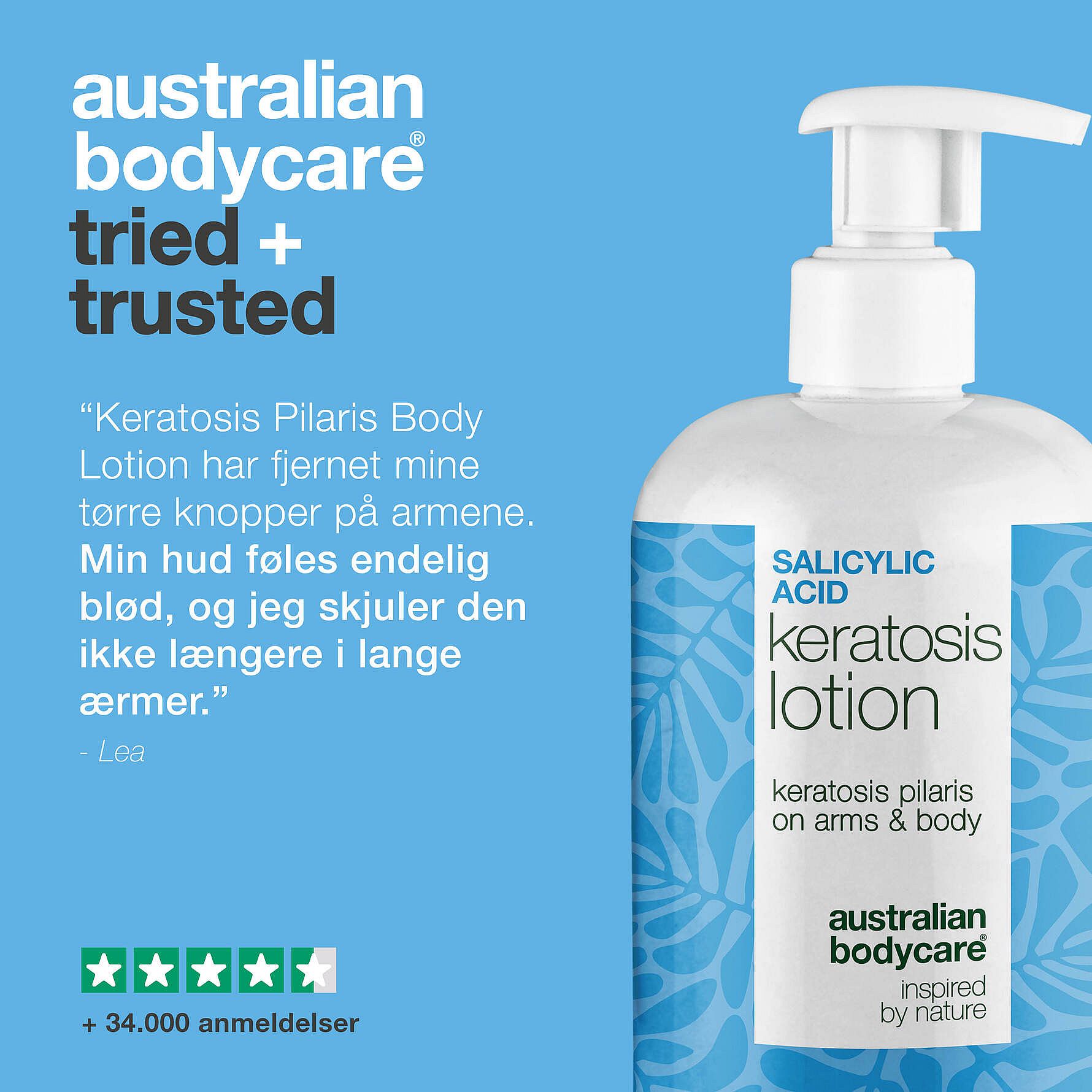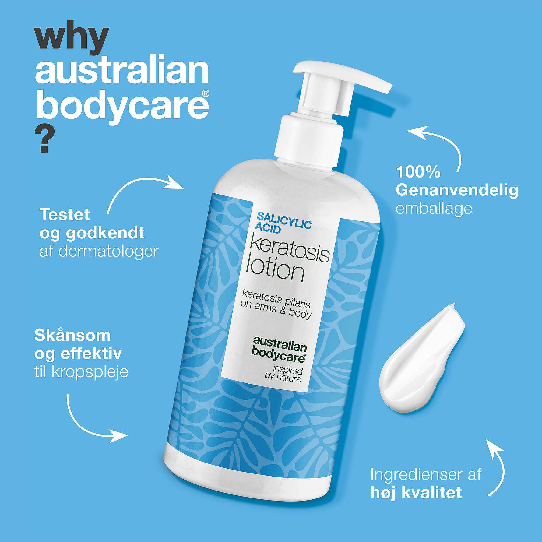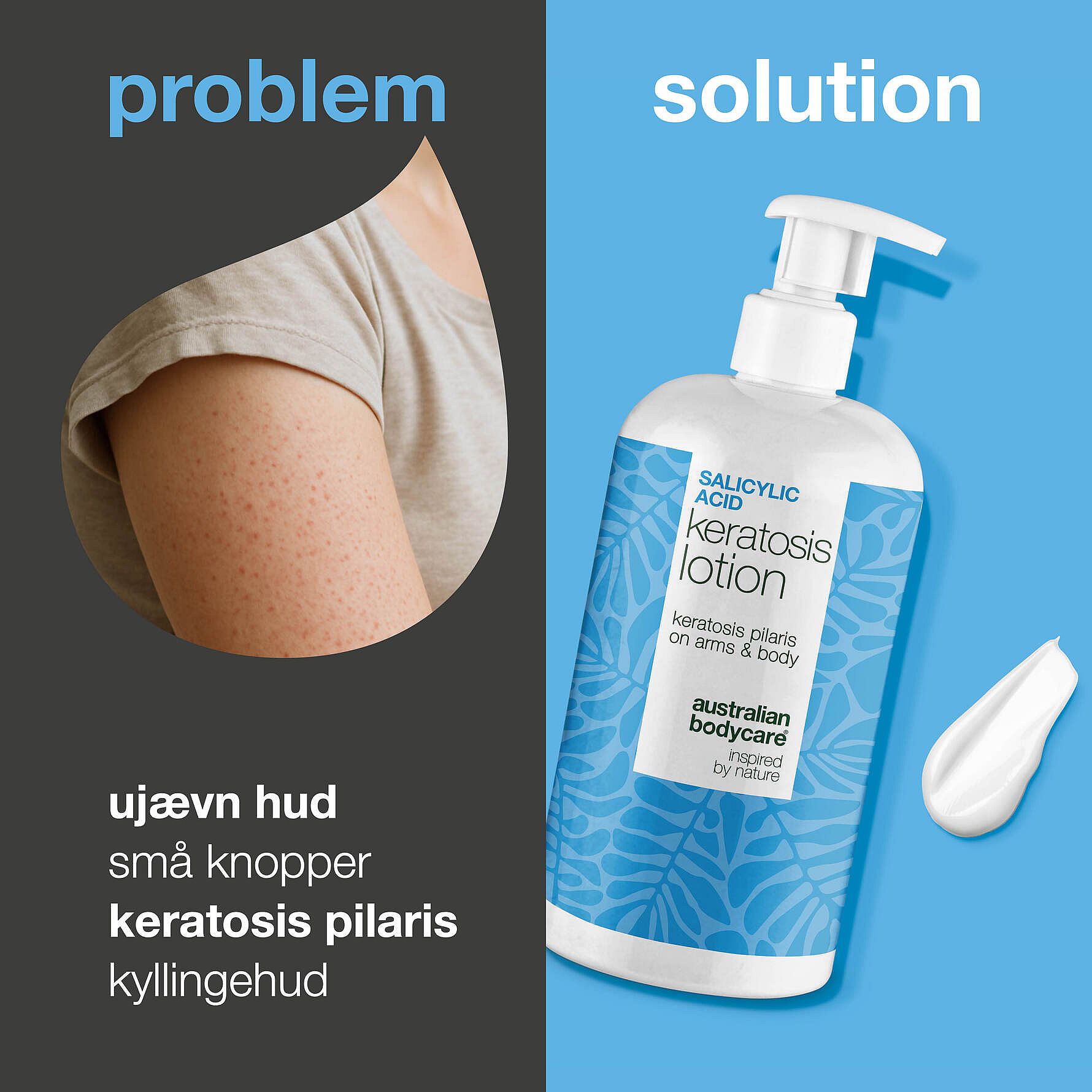 Derfor har vi hos Australian Bodycare udviklet en unik og specialudviklet body lotion, der målrettet hjælper dig med at få bugt med de ru knopper og genoprette en blødere, mere ensartet hud. En problemløsende hudplejeløsning, som er både effektiv og skånsom – inspireret af naturen og videnskaben.