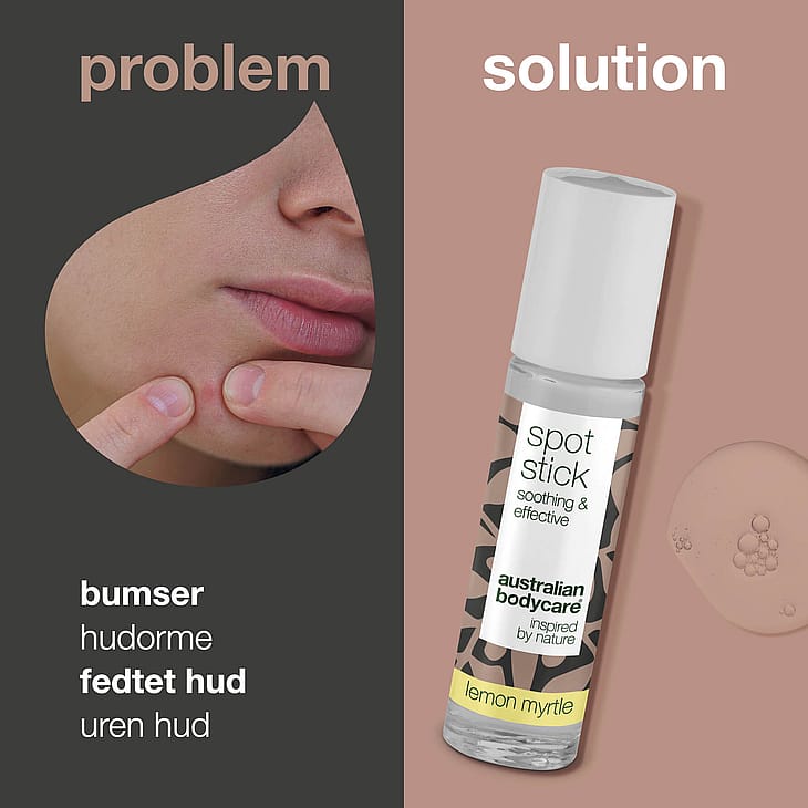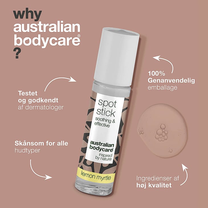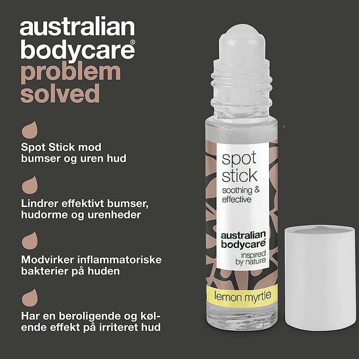 Australian Bodycare Spot Stick med Lemon Myrtle mod bumser, hudorme og uren hud. 100% naturlig Tea Tree Oil modvirker bakterier og bumser og virker kløestillende. Egnet til alle hudtyper.