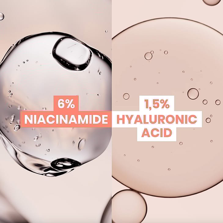- Niacinamid (6%): Stimulerer cellefornyelsen, udjævner hudtonen og styrker hudbarrieren