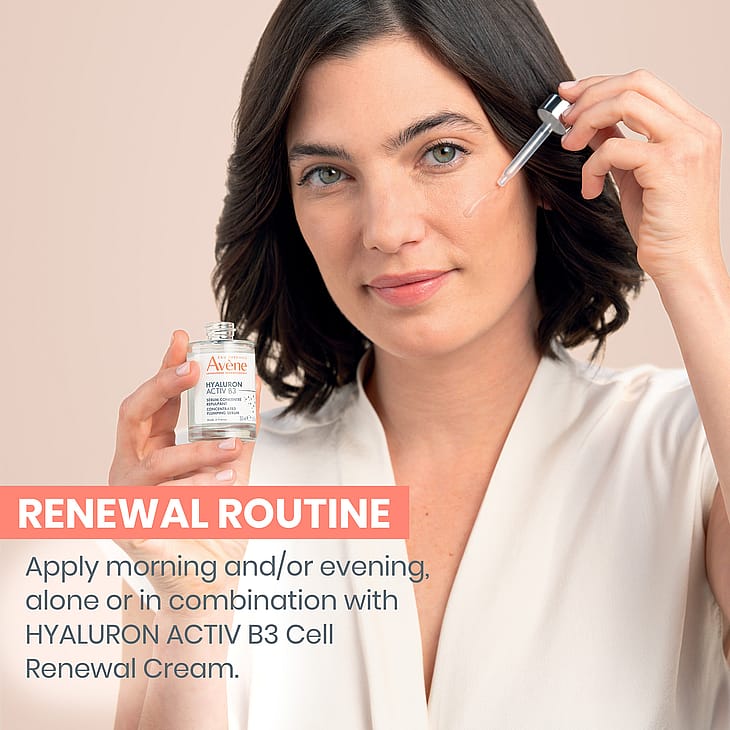 Anvend Avène Hyaluron Activ B3 Concentrated Plumping Serum som en del af din daglige hudplejerutine, morgen og aften. Påfør et par dråber på renset hud i ansigtet, på halsen og décolleté. Fordel serummet blidt på huden med fingerspidserne.