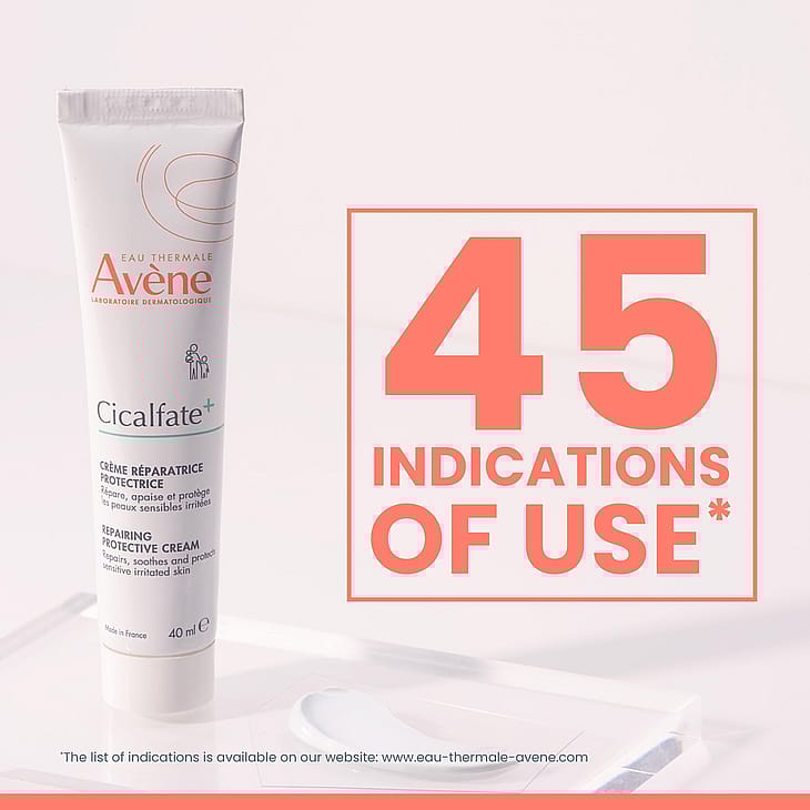 Cremen lægger sig som en beskyttende film i hudens øverste lag, hvor irritationen opstår, og den beskytter huden mod ydre påvirkninger. Den plejende formel er skabt til at berolige, rense og reparere irriteret hud. Formlen er beriget med [C⁺-Restore]™, en postbiotisk aktiv ingrediens udvundet fra Avène Termalkildevand, og som understøtter hudens naturlige helingsproces. Et kobber/zink-kompleks hjælper med at reducere bakteriespredning, mens det høje indhold af Avène Termalkildevand virker beroligende og irritationsdæmpende på huden.