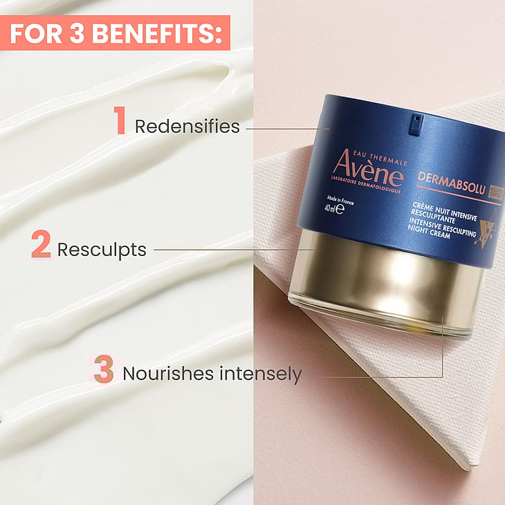 ProduktbeskrivelseDermAbsolu Anti-Age Intensive Night Cream er en intensivt nærende anti-age natcreme. Den er udviklet til alle hudtyper, herunder sensitiv hud, og virker på de 3 kliniske tegn på aldring: tab af fylde, tørhed og ujævn hudtone.