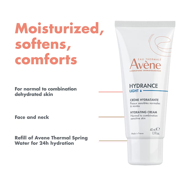 Avène Hydrance Light er en fugtgivende ansigtscreme, der er specielt udviklet til normal/kombineret sensitiv og dehydreret hud.